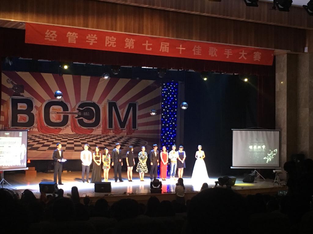 歌声回旋在会场渐渐飘入空中,经管十佳晚会伴随着夜色渐深夜缓缓拉上帷幕。但这次晚会的精彩之处依旧值得我们回味和赞扬。本次十佳歌手的举办,从前期准备到现场展现,都倾注了经管领导和学生干部的大量心血。这不仅仅是一次比赛,一场晚会,更重要的是它代表着经管学子有着更坚实的臂膀去肩负责任,有更过人的胆识去独当一面。“Boom”是一颗颗星辰在海院纯粹的夜空绽放的光芒,这一刻所有人都是最美、最青春洋溢的星。