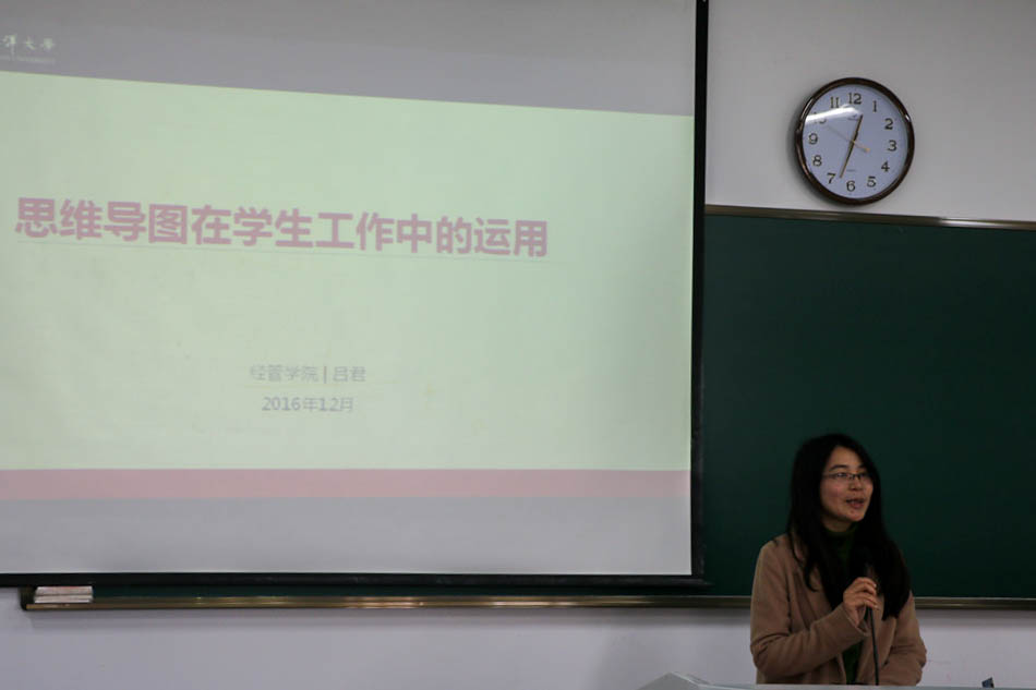 2016年12月8日中午,best365官方网站登录入口团委书记吕君老师在长峙校区公共教学楼203召开了关于思维导图在学生工作中的运用的讲座。best365官网学生会、团委的各学生干部以及青马班成员出席了本次讲座。