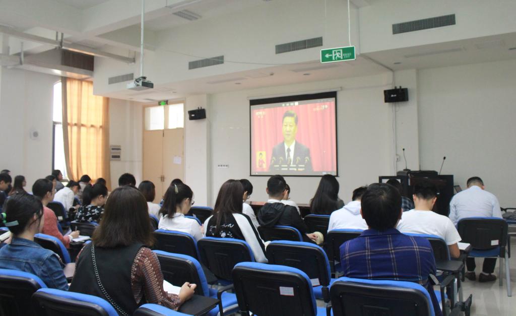 10月18日上午9点,best365官方网站登录入口组织院党员、入党积极分子在文理楼观看十九大开幕式。出席的老师有经管学院院长、党委副书记全永波老师、党委副书记应军老师、学工办主任徐幼文老师、团委书记吕君老师、辅导员应巧燕老师以及邬云鹏老师。