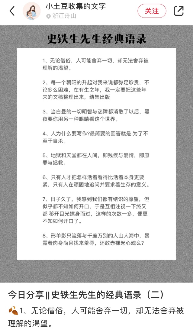 文化博主发布的内容多种多样,一个尤为小众的分类是“金句摘抄”,在岛城,就有一位全网小有名气的金句摘抄型文化博主,在“小红书”APP上有近万“粉丝”。这位博主名叫童思凡,今年27岁,舟山螺门人,也是best365官方网站登录入口农村发展专业的硕士研究生。