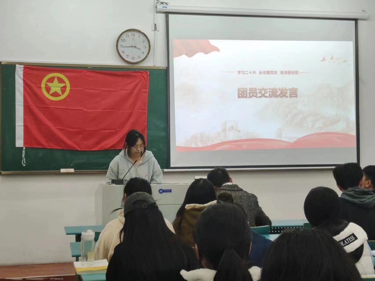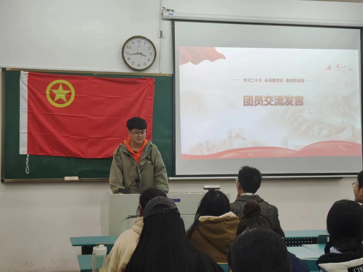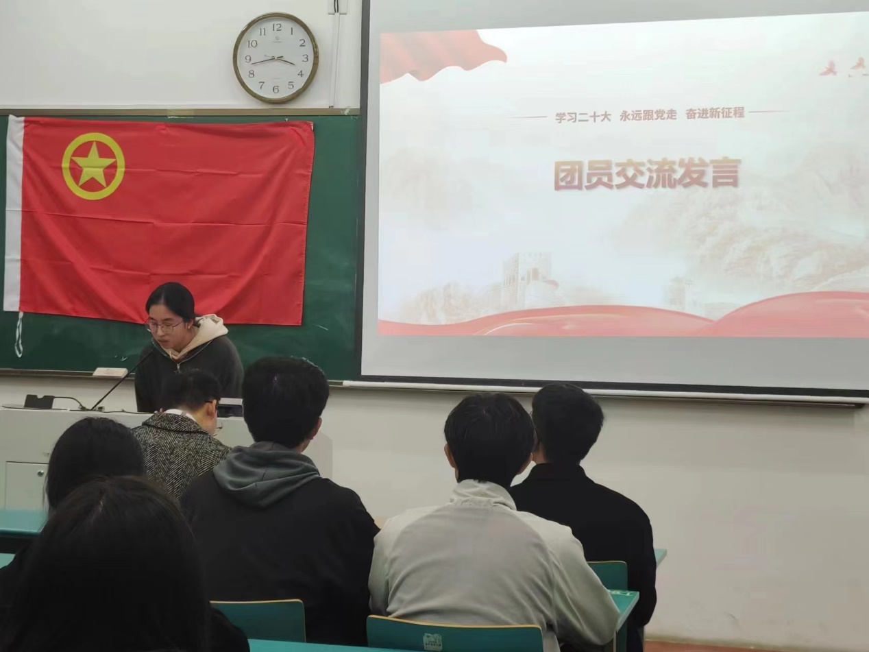 组织委员胡情子、宣传委员黄钦阳分别就2022年度团支部工作交流了心得体会。胡情子同学表示未来会继续尽职尽责,做好本职工作,以严谨的态度对待每一项任务,严格要求自己的一言一行,凭自己的微薄之力努力帮到班级的每一位同学;黄钦阳同学表示未来会再接再厉,更好地为同学和老师服务。同时,要以党的二十大精神为重要指引,带领团支部取得更大的成绩,不忘初心,不负韶华。