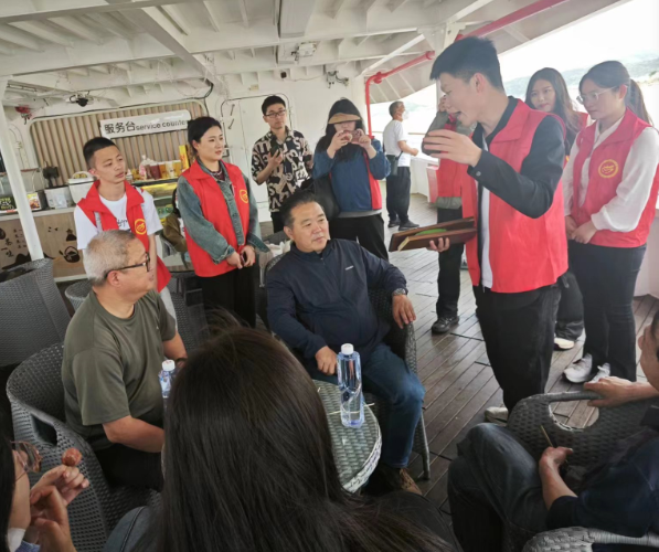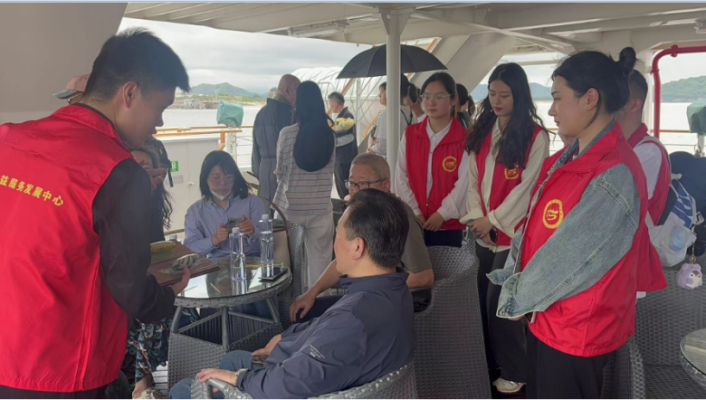 志愿服务团队的成员现场向来自各地的观摩体验科学放鱼游客介绍了舟山本地水域生态环境状况和水生生物情况,讲解了人类活动对于水域生态环境和水生生物所产生的一些影响以及如何去减少和改善这一类问题的措施,本着生命共同体的原则,宣传重视水域环境的治理和保护;呼吁现场游客学习了解水生生物放流知识,维护东海生物多样性。