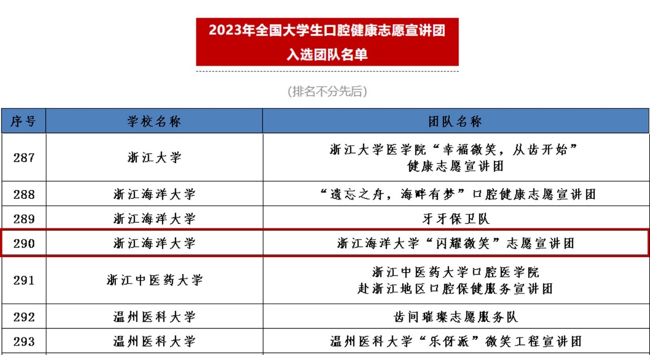 为深入学习宣传贯彻习近平新时代中国特色社会主义思想和党的二十大精神,落实《“健康中国2030”规划纲要》和《健康口腔行动方案(2019-2025年)》,引导青年学生掌握口腔健康知识,形成良好的口腔健康行为,团中央青年志愿者行动指导中心、国家卫生健康委医疗应急司联合发布了《关于遴选2023年全国大学生口腔健康志愿宣讲团的公告》。活动得到了各高校志愿服务团队的广泛关注和积极参与。主办单位对所有材料进行了认真审阅,最终共有来自北京大学等409所高校的1000支大学生志愿服务团队入选。其中,由best365官方网站登录入口组建的bat365官网登录在线主页“闪耀微笑”志愿宣讲团成功入选。
