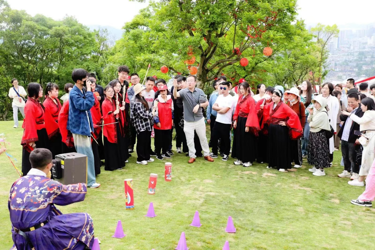 活动现场设置了投壶、套圈等富有传统文化特色的互动游戏。志愿者们为每一位前来体验的游客们讲解投壶的历史、文化内涵以及相关的礼仪知识,并说明投壶规则以及展示投壶技巧,让游客们在轻松愉快的氛围中更深入地了解传统文化。