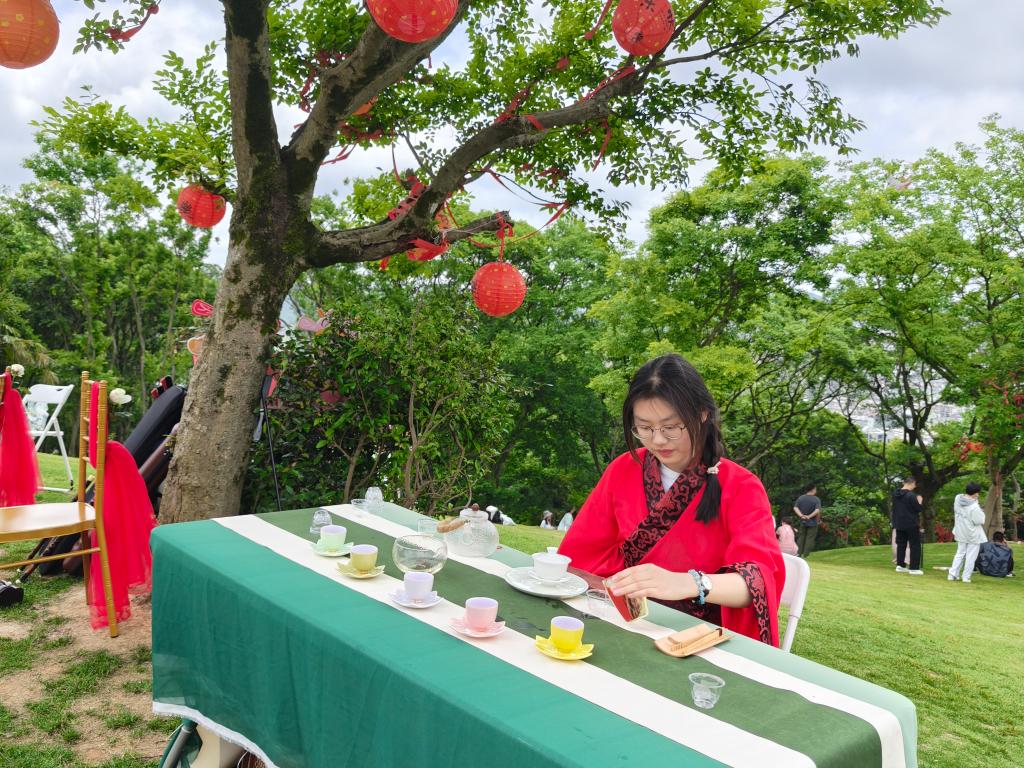 为了让游客了解到茶艺的独特魅力和传统文化内涵,志愿者们进行了现场茶艺展示。游客们在欣赏中感受到茶艺的韵味,并在志愿者的指导下参与到品茶、学习茶艺过程中来。他们在亲身体验中了解到茶叶的分类、泡法等知识,也感受到茶艺带来的美好享受。