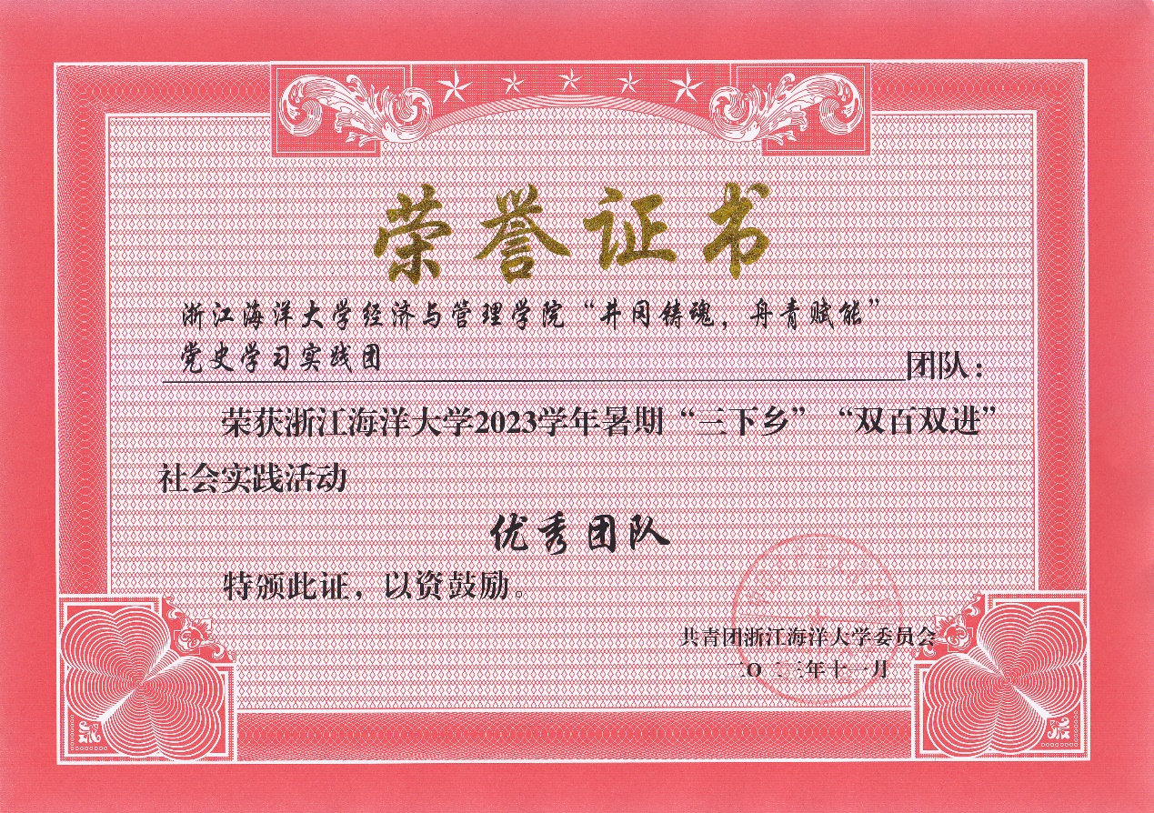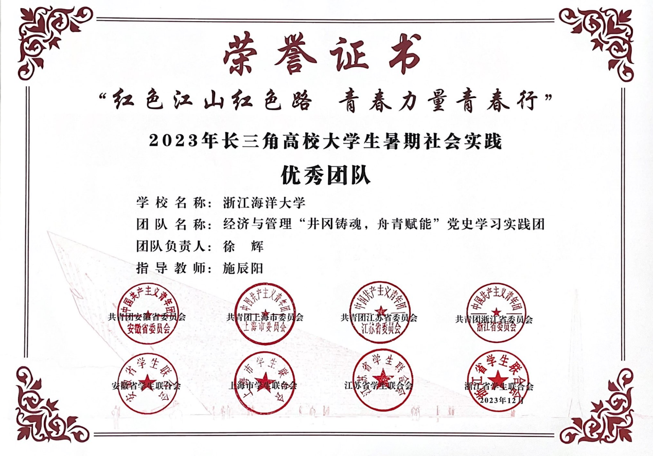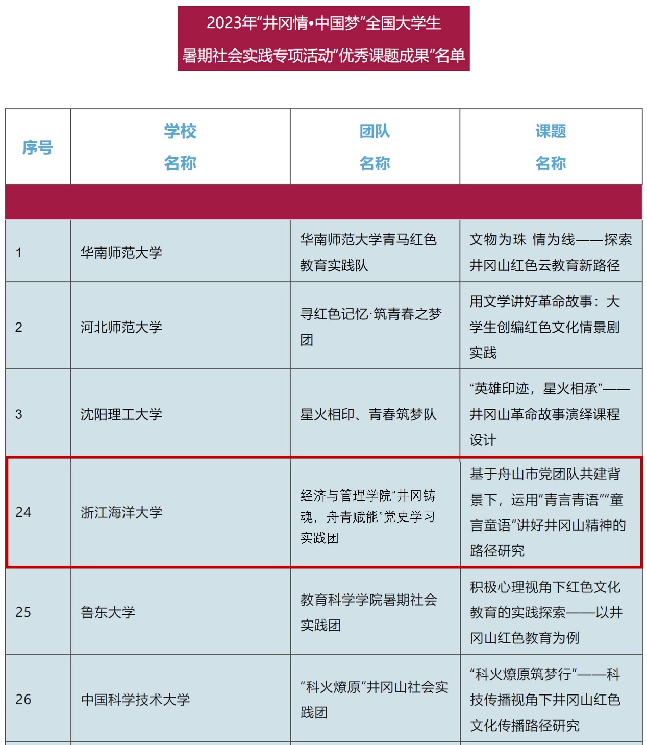 从全国招募的104支大学生组成实践团队,赴井冈山开展党史学习、红色教育等专项实践活动,该活动在广大青年学生中产生积极影响。最终,评选出38件“优秀课题成果”和12支“优秀团队”。其中,由best365官方网站登录入口“井冈铸魂,舟青赋能”党史学习实践团撰写的《基于舟山市党团队共建背景下运用“青言青语”“童言童语”讲好井冈山精神的路径研究》荣获“优秀课题成果”。