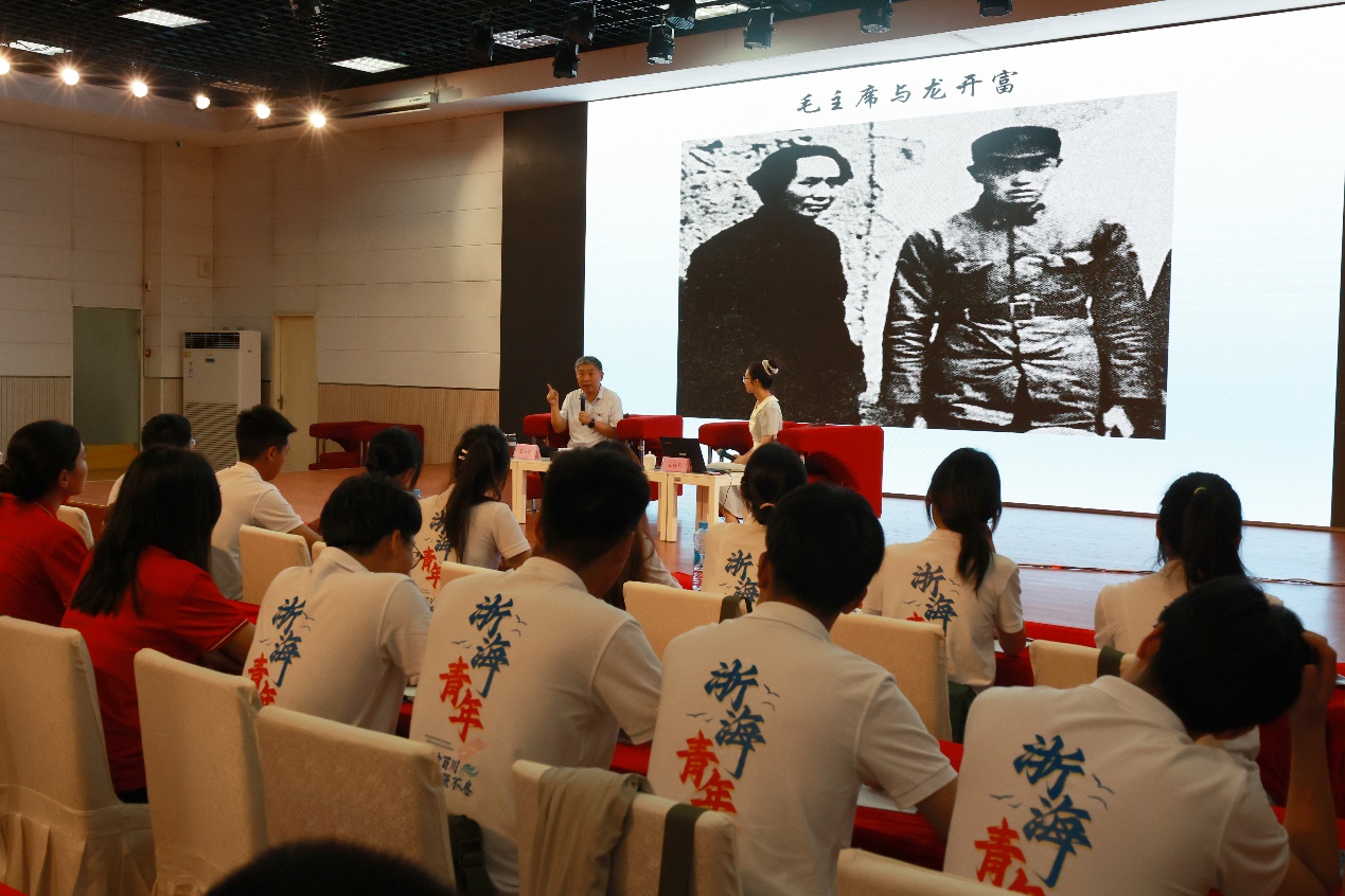 开国少将龙开富之孙龙小钢向大家深情讲述了爷爷的革命故事。龙开富于1908年出生在湖南茶陵一户贫穷的农民家庭,由于父母早亡成为孤儿。他于1927年参加了湘赣边界秋收起义,1928年加入中国共产党,曾担任毛泽东的挑夫,保护前委的文件、印章和命令底稿等重要文件。访谈中,龙小钢以一张秋收起义十周年纪念的照片为引子,深情地讲述了龙开富在毛主席的帮助下从一名普通青年成长为革命战士的传奇故事。龙开富一生忠于党、赤诚为人民,他谦虚朴实、严以律己、廉洁奉公,并将这种品质深深烙印在家风之中。龙小钢一家三代忠诚于党、献身国防,传承发扬听从组织安排、刻苦勤奋工作的优秀品质。这也让实践团成员感受到了井冈山精神的核心——实事求是、敢闯新路。新时代的青年应传承龙开富将军的革命精神和家风传统,将个人理想融入祖国的伟大事业中,在新的历史条件下勇于担当、开拓创新。