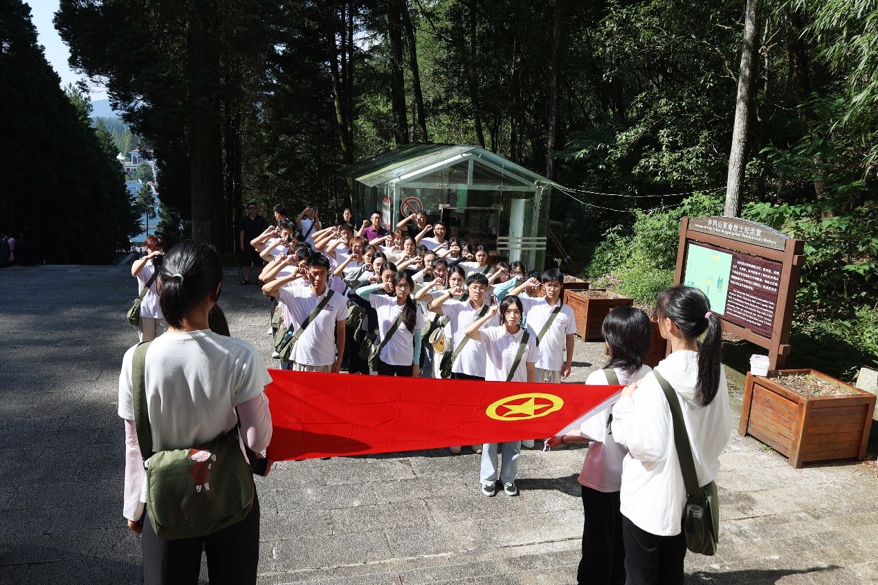 在全国青少年井冈山革命传统教育基地,实践团参加了一场特别的暑期升国旗仪式。实践团成员在庄严的国歌声中,迎着阳光,目送着鲜艳的五星红旗在升旗手的护送下冉冉升起。迎风飘扬的五星红旗,承载着新的希望,激扬着青春的斗志。随后,实践团全体成员放声高歌《歌唱祖国》,用嘹亮的歌声表达对祖国的热爱与祝福,也激励着他们在未来的学习与生活中勇敢追梦、不懈奋斗。