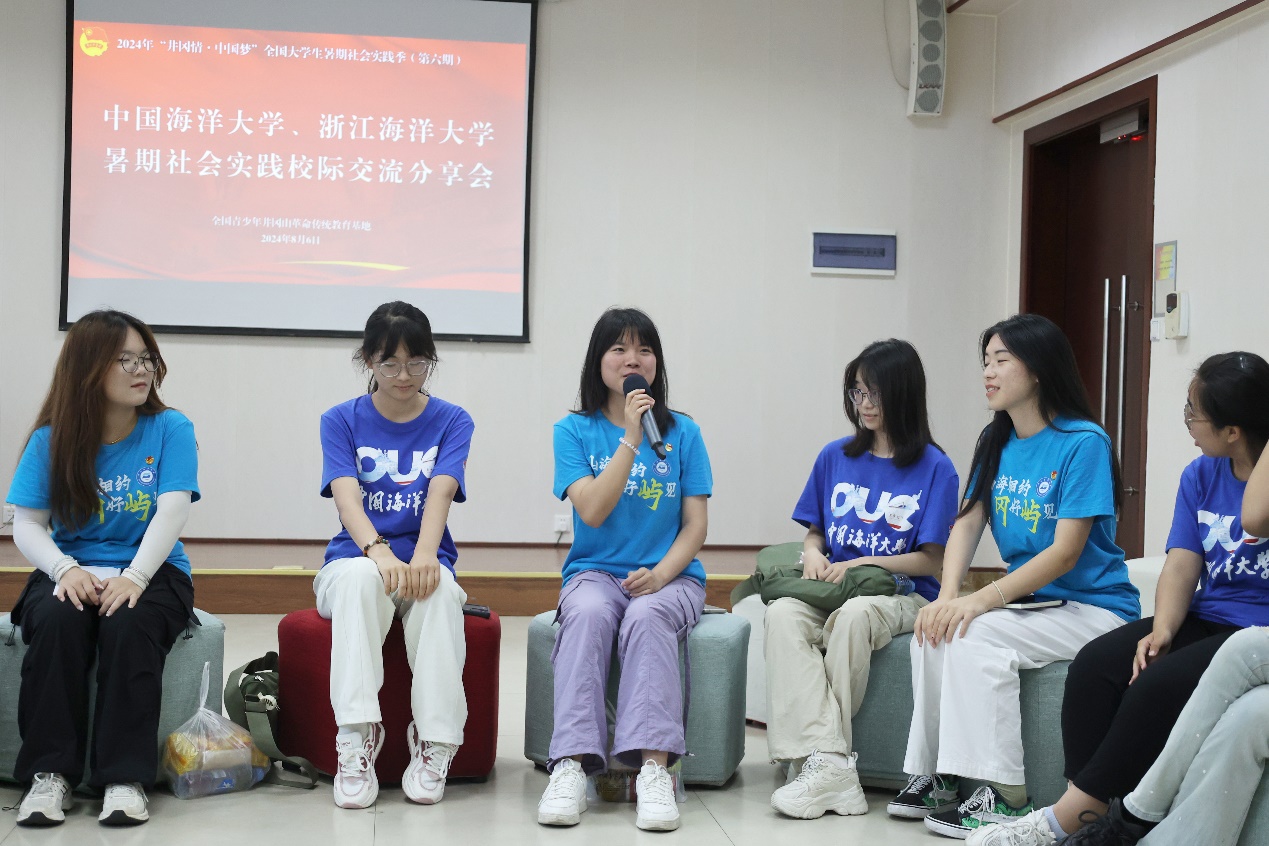实践团携手中国海洋大学“星火传承·井冈新篇”实践团在全国青少年井冈山革命传统教育基地开展暑期社会实践活动校际交流分享会。双“海”青年在井冈山话青春、讲党史、谈梦想、聊人生,彼此分享对井冈山精神的理解。两校师生还共赴茨坪毛泽东同志旧居、南山火炬广场等地参观学习,对井冈山革命斗争史和井冈山精神有了更为深刻的认识。