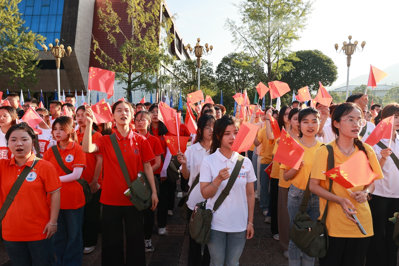 国旗是我们每个人的骄傲和自豪,在中华人民共和国成立75周年之际,与国旗合个影成为实践团表达爱国情怀的方式。他们来到中华苏维埃共和国临时中央政府的诞生地——江西瑞金叶坪革命旧址群,用行动晒出浓浓爱国情。一个个朝气蓬勃的面孔、一张张向善向上的脸庞在国旗下定格与绽放,他们用简单质朴的方式为祖国送上祝福,凝聚起奋进新时代的强大力量。