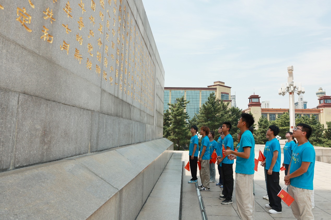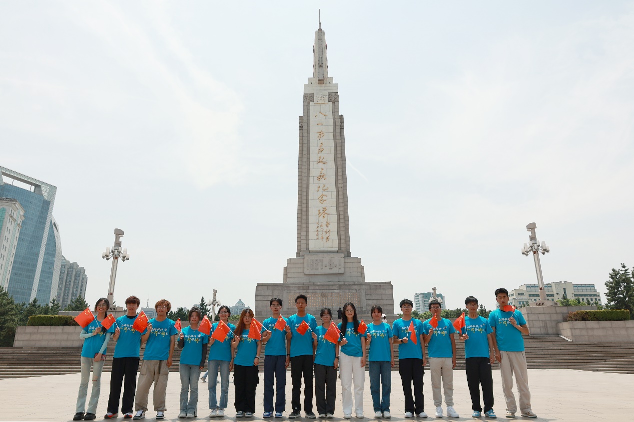 在江西南昌,实践团来到八一广场实地参观八一南昌起义纪念塔。实践团指导教师施辰阳为大家详细解读了纪念塔各部分的内容和寓意。实践团成员还在三幅大型花岗岩浮雕前驻足凝视,怀着庄严肃穆的心情瞻仰纪念塔,认真敬读金色碑文,追溯革命前辈独立领导武装革命战争和创建人民军队的奋斗历程,穿行历史感悟祖国的伟大变迁。“先辈们在风雨如晦的年代,以青春和热血点燃了革命的火种。新时代的青年更要继承弘扬革命先烈的崇高精神,为实现中华民族伟大复兴中国梦奉献青春力量。”实践团成员、bat365官网登录在线主页国防青年先锋连连长徐轩说道。
