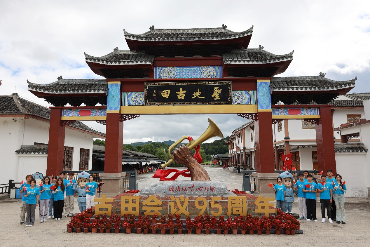 为纪念古田会议95周年、古田全军政治工作会议10周年,实践团来到福建龙岩古田会议会址,感受我党在此确立思想建党、政治建军原则的思想之光。师生们先后走进古田会议纪念馆、廖氏宗祠、中兴堂、协成店等地。一幅幅图片、一件件文物、一份份档案,无不向大家诉说着党领导的人民军队从胜利走向胜利的壮阔历程。实践团成员还在此重温了入党誓词,进一步坚定了为共产主义事业奋斗终身的信心和决心。“古田会议精神是与时代同行的红色基因,作为舟山市‘红领巾巡讲团’成员,我将积极传播党的光辉历史,以青年力量谱写新时代党团队共建新篇章。”实践团副队长李明彦说道。