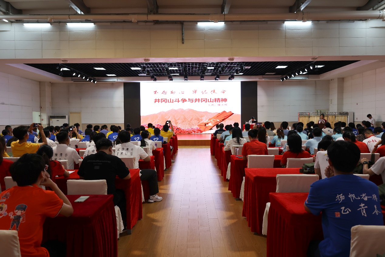 师生们在研学基地系统学习红色精神专题党课,研读《题解井冈山》《刘少奇与中央苏区》《红军长征记:原始记录》等书籍,观看《井冈山会师》《从瑞金出发》《长征》等影片,与中国海洋大学青年开展“红色精神时代价值”专题研讨,重温入党入团誓词,录制党史微课堂,对话开国少将龙开富之孙龙小钢、开国中将赵镕之女赵京娅、烈士袁文才外孙李楚臣等革命后代,感悟了革命先辈用生命谱写的人间大爱。