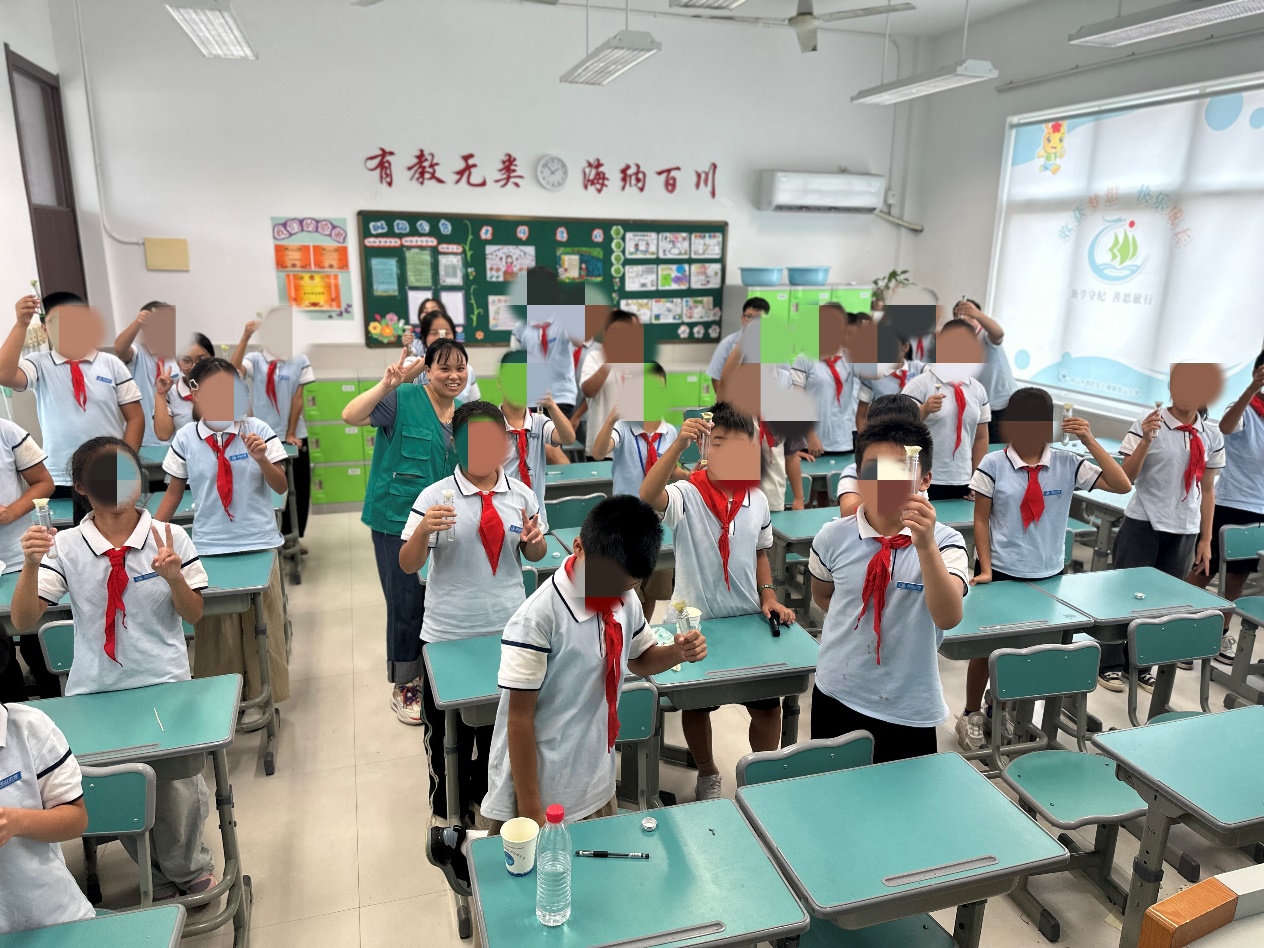 一到达学校,志愿者们便迅速投入到紧张而有序的工作中。他们与孩子们一起开展了提取叶绿素的科学小实验,耐心地为孩子们指导,让他们亲手体验科学的魅力。在实验中,孩子们的好奇心被充分激发,他们瞪大眼睛,仔细观察着每一个变化,仿佛打开了新世界的大门。随后,志愿者们还指导同学们完成了手工实践课,通过动手制作,孩子们的创造力和想象力得到了极大的提升。这两项活动不仅丰富了孩子们的课余生活,更让他们在玩乐中学到了新知识,感受到了学习的乐趣。