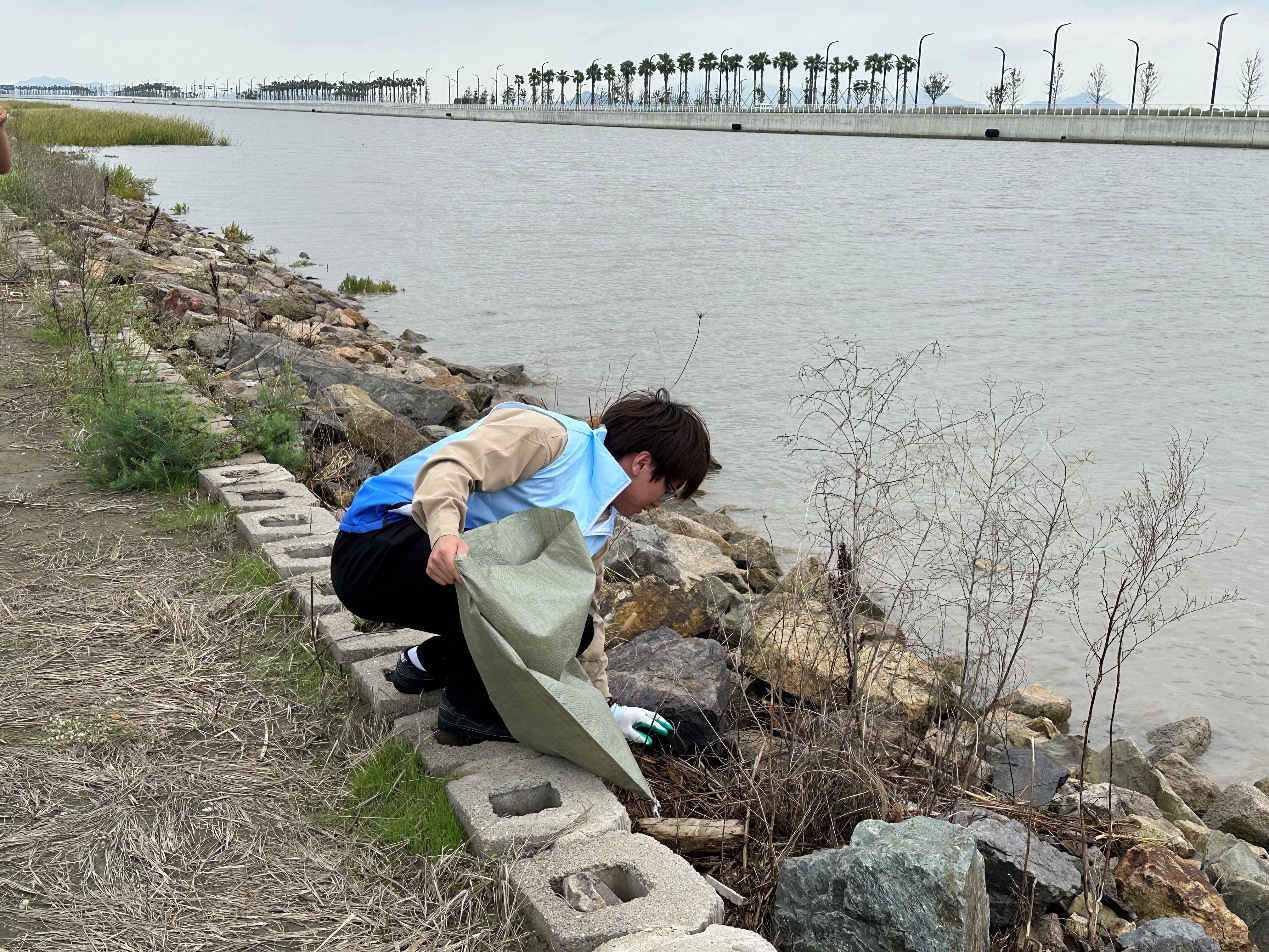 志愿者们纷纷化身“环保卫士”“海洋守护者”,手持夹钳和环保袋,或半蹲、或弯腰,耐心夹取食品袋、塑料瓶、废纸屑、干枯海草、烟头等垃圾。同学们热情不减,脚踏实地、埋头苦干的身影,成为这片滩涂最亮丽的风景线。志愿者们还积极完成垃圾分类称重、转运处置等后续工作。这片刚刚被清理过的滩涂,再次呈现出它原始的纯净与美好,仿佛在向大家证明,每一个微小的努力都能汇聚成保护海洋的强大力量。
