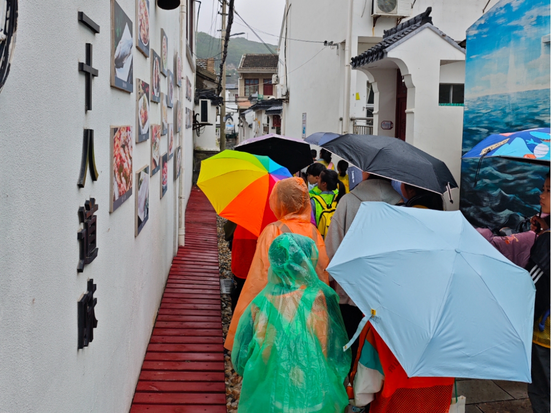 在倭井潭公园,大、小朋友们参观了“抗倭碑”和“倭井潭”,聆听了明朝时期戚家军抵御倭寇的英勇事迹,以及三姐妹为保卫家园浴血奋战的感人故事,同学们深刻体会到了历史传承的重要性,心中也种下了爱国主义的种子。