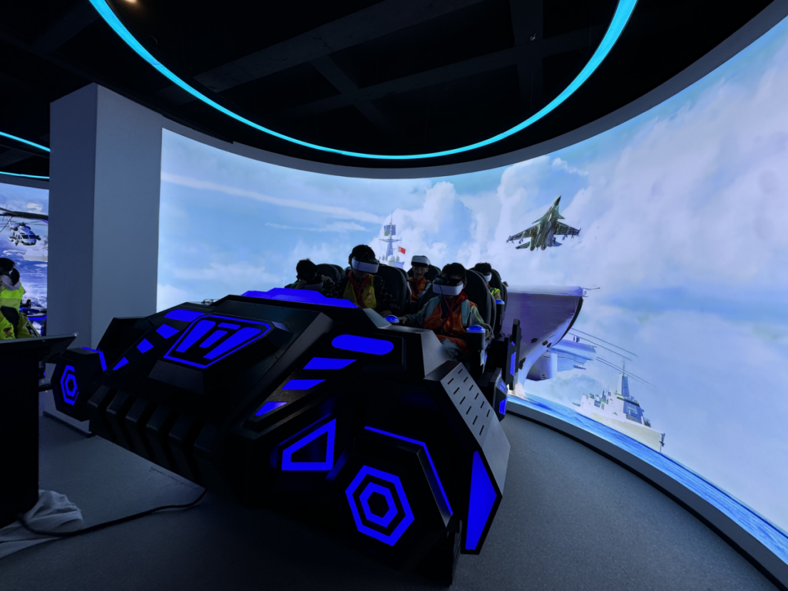 随后,大、小朋友们来到军港文化体验馆,观看了关于长涂岛海防历史的纪录片,通过互动展览深入了解军事科技的发展历程。在教官指导下,大家还参与了海战AI人机交互体验,通过模拟海战场景与AI对战,学习了现代海战知识,体验了高科技军事应用的魅力。