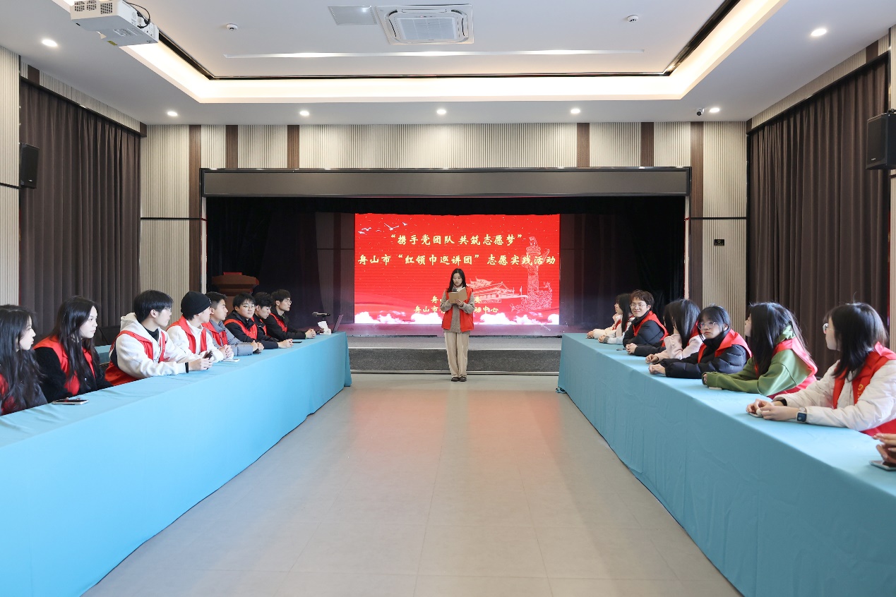 在新建村“红领巾少年军校”,志愿者们进行了一场红领巾志愿服务交流沙龙。来自Y24农发班的志愿者冯阳阳分享了他参与舟山市纪念中国少年先锋队建队75周年“红领巾爱祖国”主题队日活动暨少先队鼓号队风采展示活动的志愿心得。来自A22经济1班的志愿者胡佳秀、A23财务1班的志愿者何丹彤分享了她们参与“流动少年宫”志愿服务的难忘经历,讲述了在活动中与孩子们相处的温馨瞬间以及从中获得的成长感悟。舟山市“红领巾巡讲团”成员、A22行政1班志愿者徐辉向大家分享了2025年如何更好地面向少先队员开展红领巾思政课青年宣讲的思考。