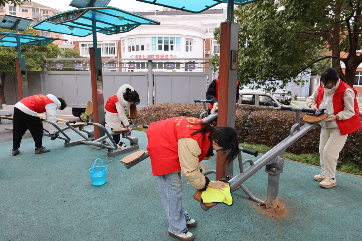 志愿者们携带着抹布、水桶等清洁工具准时集合,在社区工作人员的带领下,来到了社区公园。志愿者们有条不紊,迅速分工,一部分人负责擦拭公园内的健身器材和长椅,另一部分人则负责清理地面上的垃圾和落叶。活动过程中,志愿者们细心地擦拭着每一个器材,不放过任何一个角落的灰尘。在大家的共同努力下,公园内的设施变得焕然一新,为居民提供了一个更加舒适、整洁的休闲场所。