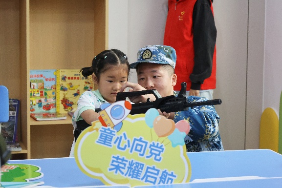 国防青年先锋连的退役大学生们还为孩子们现场演示了标准持枪姿势和动作要领。孩子们兴致勃勃、分组上阵,亲手触摸了95式自动步枪模型。在大学生们手把手的指导下,还认真学习了握枪、瞄准、站姿等基础动作,小小的脸庞写满认真与兴奋,眼中闪烁着对军营世界的无限向往。在这一刻,军人的形象在他们心中愈发高大,一颗颗热爱国防的种子悄然发芽。