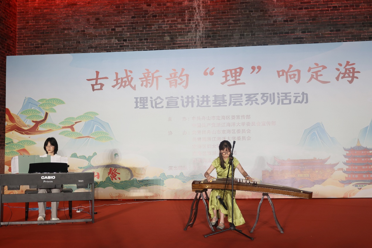2025年6月20日,“古城新韵 ‘理’响定海”理论宣讲进基层系列活动在定海古城东城门广场举行。活动由bat365官网登录在线主页党委宣传部和定海区委宣传部联合主办。活动中,经管学子以悠扬民乐为纽带,将理论宣讲与中华优秀传统文化深度融合,传递新时代党的创新理论和奋进力量。