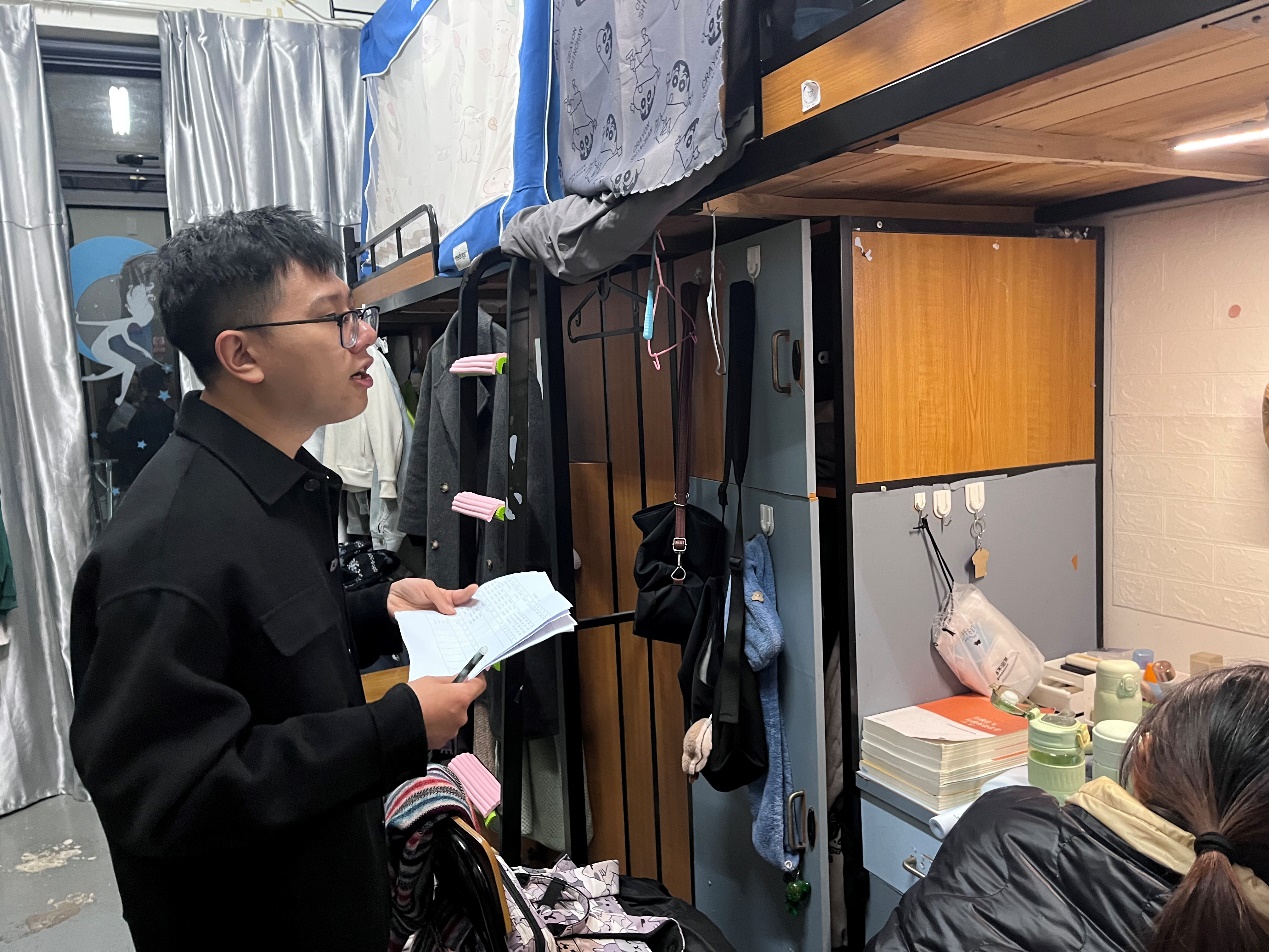 为推进网格化管理和“一站式”学生社区建设,2024年12月,best365官方网站登录入口党委书记方锐带领学院学工团队,深入本科生和研究生寝室开展走访活动,与同学们面对面交流,了解同学们的思想动态、学习生活情况。