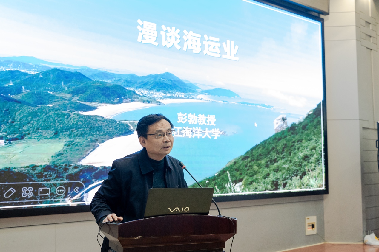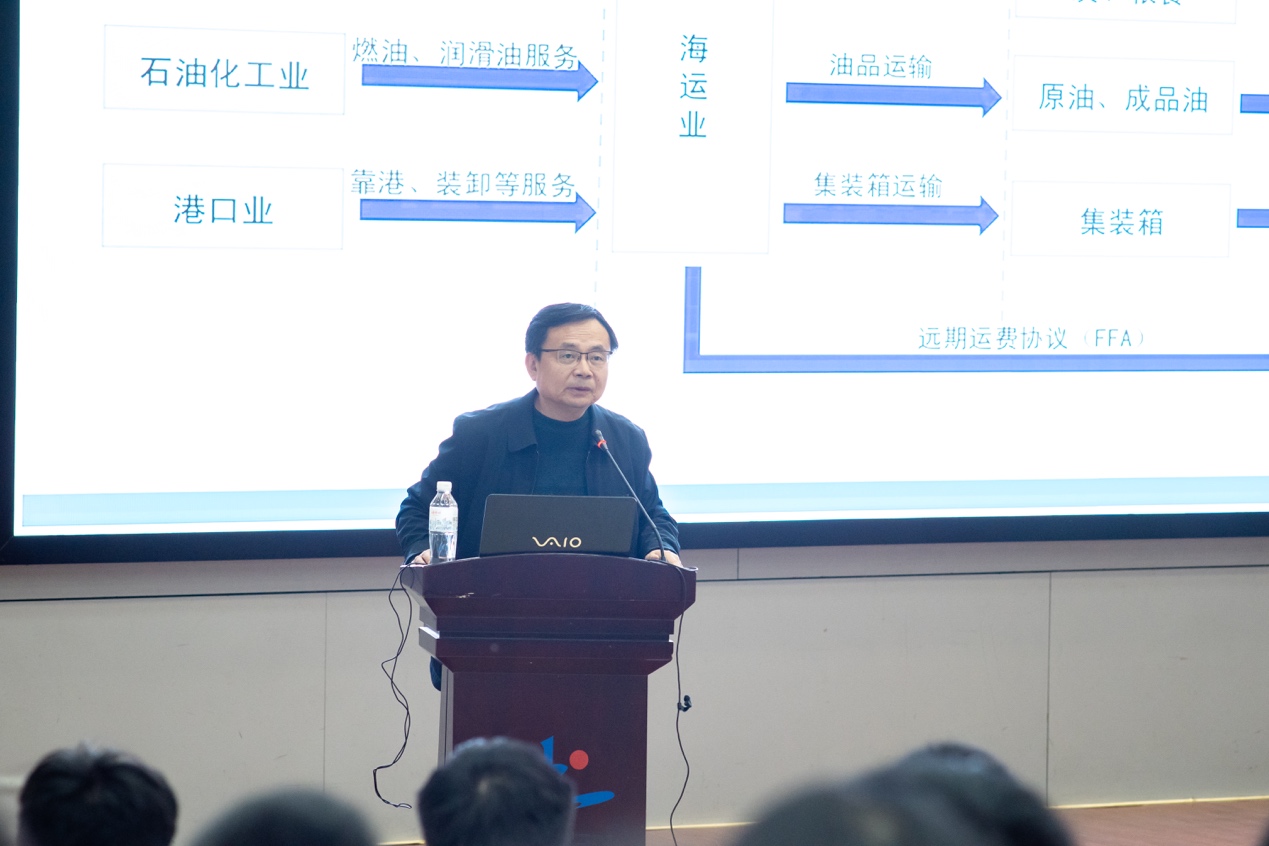 彭勃教授首先从集装箱对物流行业巨大变革切入讲座,他用详实的资料图片向在场师生展示不同类型的船舶在海运物流当中的作用,同时详细讲述了海运物流相关知识,主要涉及海运产业链、海洋运输的特点、全球海运行业的发展历程、新中国以来我国海运业的发展历程等。讲座中,彭勃教授运用照片、图表、折线图,生动讲述近些年来我国在海运业上的巨大发展成就。最后,彭勃教授从海运与物流的关系,物流管理专业人才培养和就业方向等方面与同学们进行了互动。
