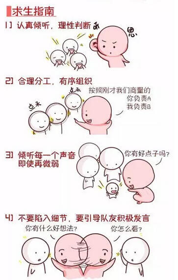 3、主动劝说持不同意见者,从而把众人的意见引向一致,做出小组决策