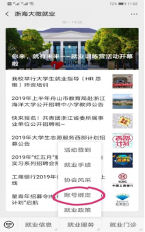 2.进入微信服务号,点击“就业服务”——“账号绑定”
