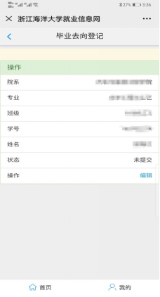 4. 进入“就业去向变更”界面,点击“编辑”,开始填报就业去向以及上传就业材料。