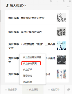 毕业生若发生变更工作单位、待就业变更为就业、离职不就业拟升学或暂不就业等,可在“浙海大微就业”微信公众号中提交最新的就业去向以及上传就业材料。经学院、学校审核后,将最新就业方案上传浙江省就业管理系统以及全国高校毕业生就业管理系统,之后毕业生可以在学信网上看到最新的就业去向。(注:审核需一定的时间,请毕业生耐心等待。)