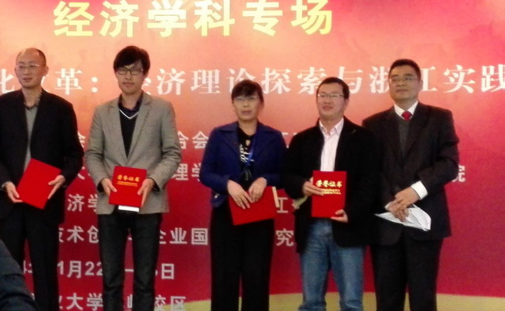 2014年11月21日,best365官方网站登录入口的四位老师参加了浙江省社会科学界第二届学术年会暨经济学年会。其中沈最意老师撰写的著作《税收及其政策效应的非参数分析—基于产业结构的视角》和李秀辉老师撰写的论文《互联网金融热潮中的泡沫隐忧—基于科技发展与金融泡沫的视角》荣获浙江省经济学会2014年度优秀成果奖二等奖。另外,王洪清老师撰写的论文《发展中国家如何根据海洋环境要求发展地区经济—以中国浙江近岸海域COD排放为例》被推荐申请社省哲学社会科学规划或省社科联科研项目。