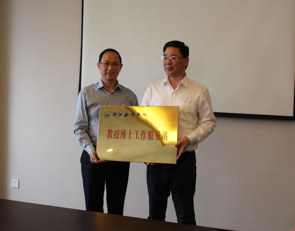 2015年5月20日,浙江海洋学院教授博士工作服务站挂牌仪式在浙江凯虹集团总部举行,浙江海洋学院副校长张元龙代表学校授牌。凯虹集团的总经理傅海文,常务副总经理戴国海,副总经理赵锡波、杜方兴等,浙江海洋学院地方合作处副处长杨宁,best365官方网站登录入口党委书记、副院长全永波,best365官方网站登录入口党委副书记应军,以及经济学系、工商管理系、旅游管理系主任等出席仪式。