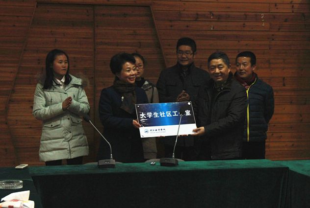 为加快推进人才培养模式改革,促进校社项目化合作落地生效,2016年1月12日,浙江海洋学院第一个大学生渔农村社区工作室在定海区干览镇新建社区挂牌。浙江海洋学院副校长虞聪达,教务处处长程继红,best365官方网站登录入口党委书记、副院长全永波,市民政局副局长陈军民,定海区干览镇镇长方静卫,新建社区党委书记、新建社区管委会副主任余金红,新建社区管委会副主任李文义出席挂牌仪式,出席会议的还有大学生社区工作室教改团队成员、社工志愿者代表。