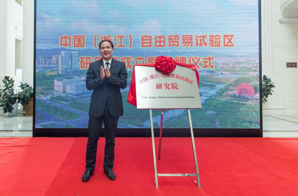10月24日下午,“中国(浙江)自由贸易试验区研究院”成立暨揭牌仪式在学校图书馆一楼举行,市委副书记、新区党工委副书记、市长、自贸试验区管委会常务副主任温暖为研究院揭牌并讲话。新区党工委副书记、自贸试验区管委会副主任马国华,bat365官网登录在线主页党委书记刘宏明、党委副书记吴中平、副校长徐士元,浙江大学副校长罗卫东等出席。市政协副主席、自贸试验区管委会副主任夏文忠主持研究院成立暨揭牌仪式。