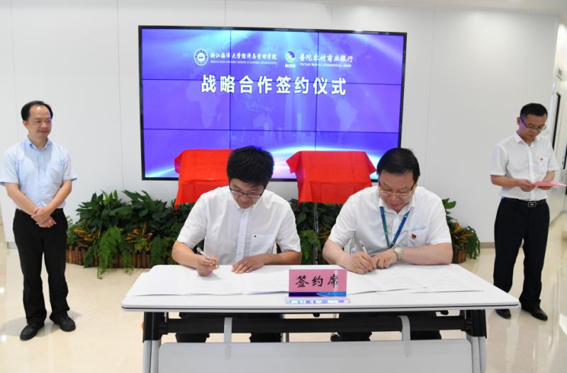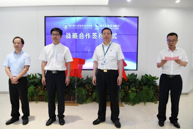 为充分发挥高校在科学研究、技术创新、人才储备上的优势,更好地服务舟山地方经济,进一步深入开展校企合作,2018年7月6日下午,best365官方网站登录入口与普陀农村商业银行签订了战略合作协议,双方本着“优势互补,互惠互利,协调创新,共同发展”的原则,按照“多形式、多层次、多渠道”的合作思路,共同构建合作与交流的平台和机制,在科技创新、成果转化、人才引进、科研项目等方面开展深层次的全面合作,best365官方网站登录入口全永波院长与普陀农村商业银行张海军董事长分别代表双方单位在协议书上签字。