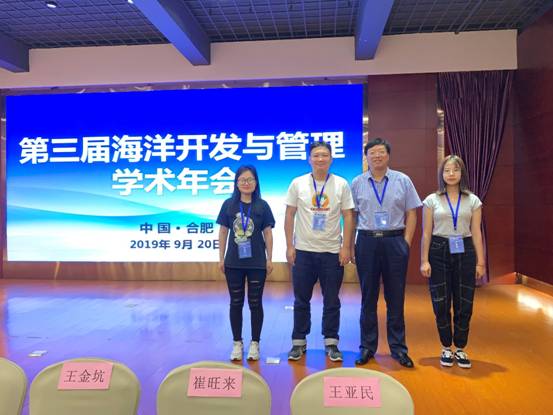 2019年9月19-21日,第三届海洋开发与管理学术年会在安徽合肥举行。会议以“绿色发展 共建海洋生态文明”为主题,来自自然资源部、各省(市)海洋局、海洋发展与渔业局、自然资源与规划局、高等院校、科研机构、学术期刊、出版机构的70多名领导、专家学者和学生参加了此次盛会。best365官方网站登录入口崔旺来老师、杨帆老师,以及硕士研究生陈骏玲、庞雅倩参加了此次会议。