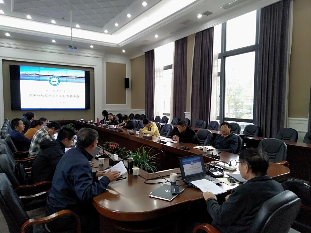 2019年11月18日下午,bat365官网登录在线主页国家社科基金项目申报专题讲座在行政楼6号会议室如期举行。学校邀请浙江工业大学池仁勇教授主讲,他介绍了国家社科基金项目申报及评审流程,并重点指出项目申报选题、申报人前期研究成果的重要性。并用鲜活的事例特别强调选题要新颖,要具有时代感,并且突出地方特色、民族特色和学科特色。讲座结束后,参会教师积极提问交流,池仁勇教授分别给予了中肯有效的意见。