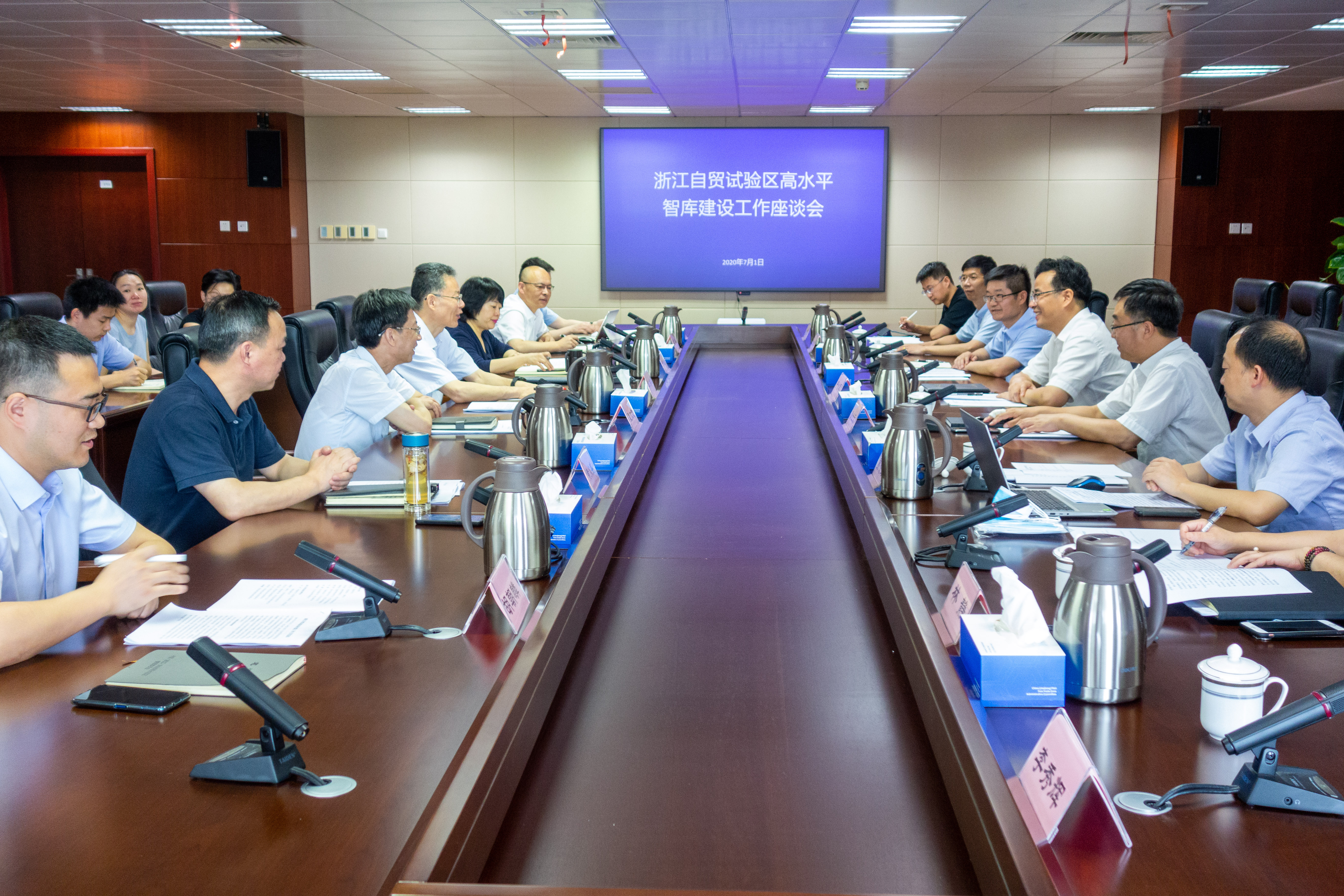 7月1日上午,浙江自贸试验区高水平智库建设工作座谈会在浙江自贸试验区管委会召开。舟山市委副书记、新区党工委副书记、自贸试验区管委会副主任华伟,副市长、自贸试验区管委会副主任俞晓丹,市政协副主席、自贸试验区管委会副主任夏文忠等自贸试验区领导与bat365官网登录在线主页党委书记严小军,党委委员、副校长徐士元出席座谈会。浙江自贸试验区管委会和bat365官网登录在线主页的相关处室、自贸试验区研究院相关人员等参加座谈会。