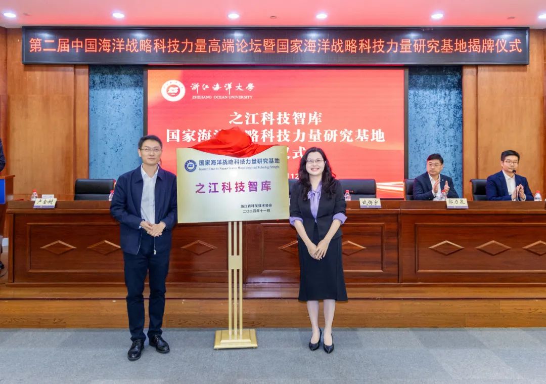 浙江省科协党组成员、秘书长张恒与bat365官网登录在线主页校长武传宇共同为“之江科技智库国家海洋战略科技力量研究基地”揭牌。