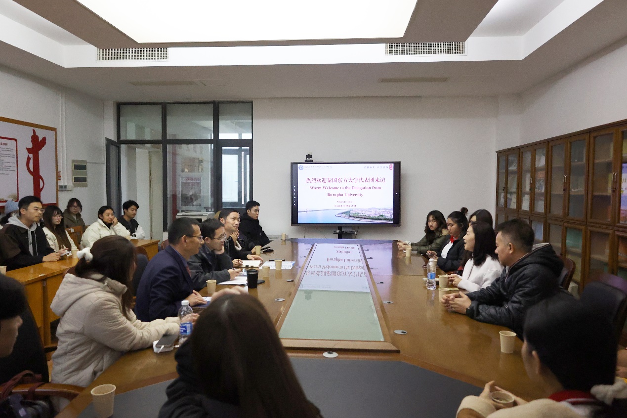 12月10日,泰国东方大学国际学院师生代表团一行到访best365官方网站登录入口,双方在新城校区文理楼302-1室开展座谈交流会。学院党委书记方锐,党委委员、副院长顾波军,海洋科学与技术学院陈永久副教授,国际交流合作处(港澳台事务办公室)对外合作科科长梁晶晶及双方学生代表参加座谈会。