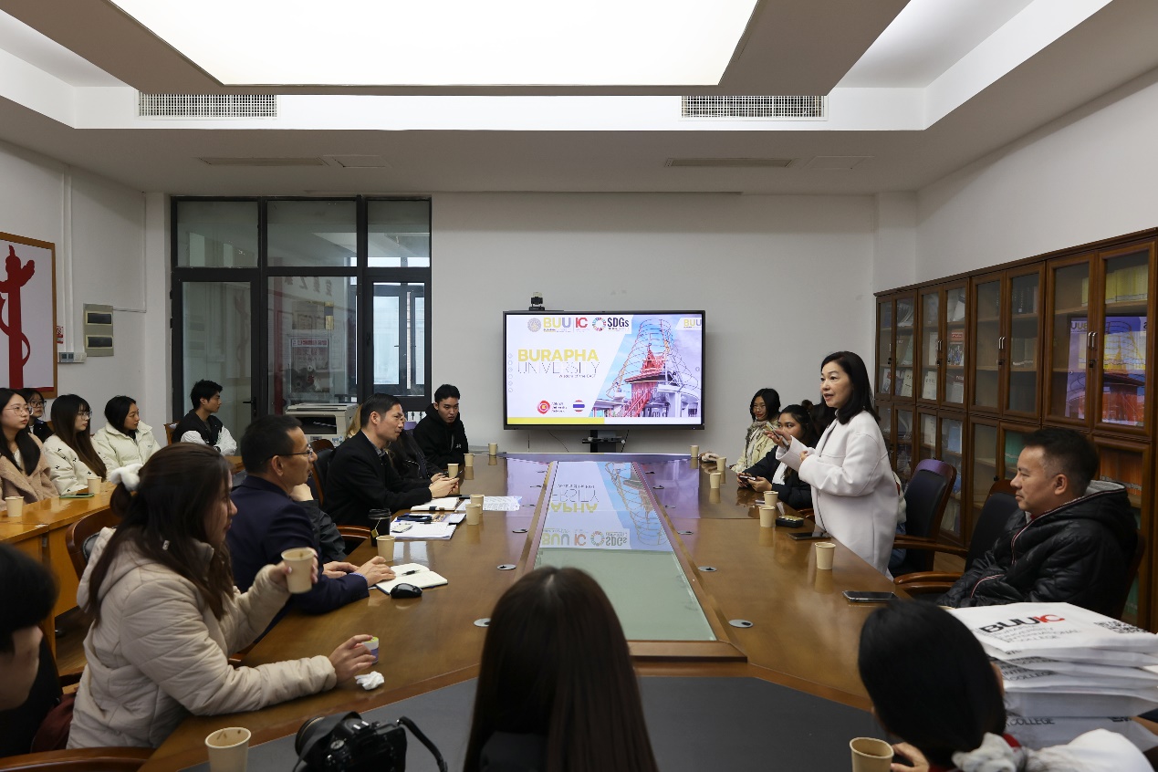 双方代表分别详细介绍了各自学校的办学历史、学科专业、师资队伍、科研成果以及国际交流等方面的情况。学院党委委员、副院长顾波军重点围绕本科生交流交换项目、科研合作以及联合培养博士项目等具体议题与泰国东方大学国际学院代表团进行了深入交流与探讨。