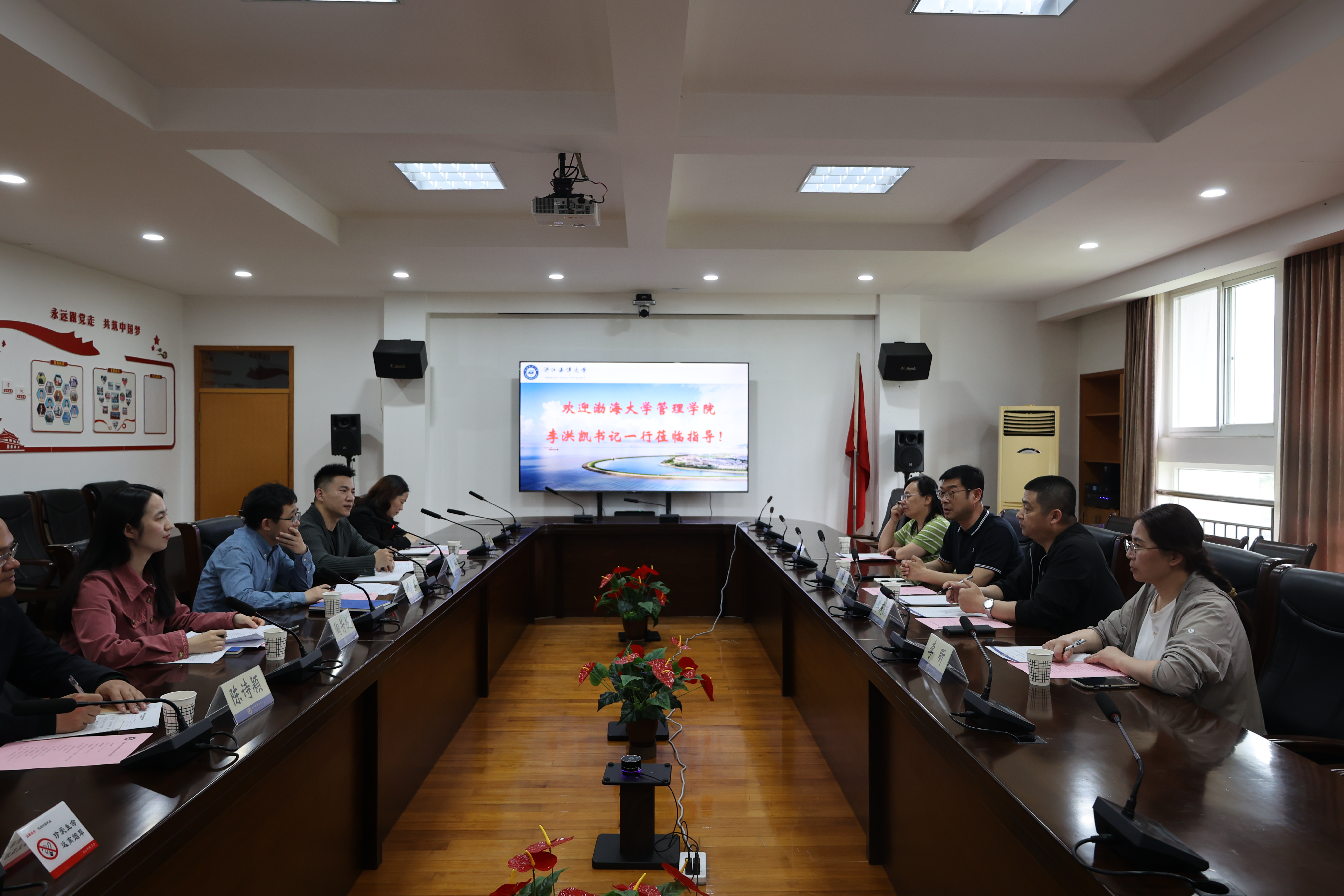 4月24日,渤海大学管理学院党委书记李洪凯一行到访best365官方网站登录入口,双方在定海校区行政楼2号会议室开展座谈交流会。best365官方网站登录入口副院长顾波军、高猛,党委副书记兼纪委书记陶芳芝,综合办公室主任陈毓,工商管理系副主任陈诗颖参加座谈会。高猛副院长主持会议。