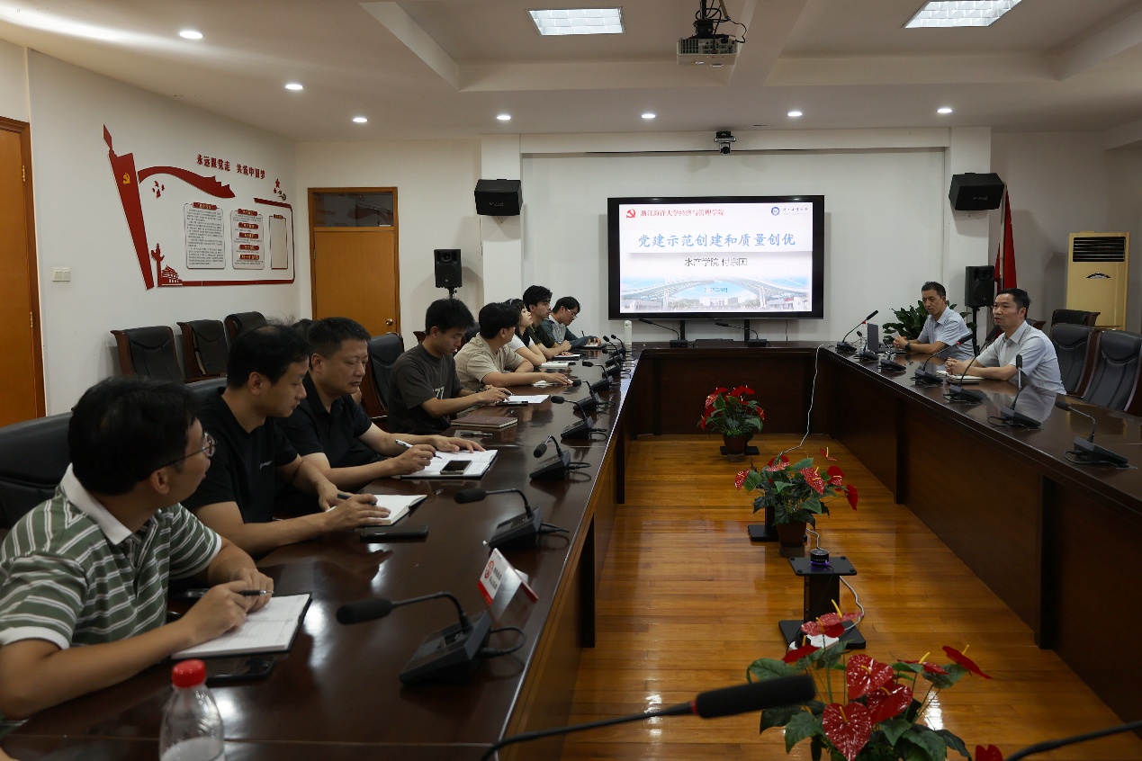 水产学院党委副书记、纪委书记付宗国以《党建示范创建和质量创优》为主题,从学校党建案例的启发出发,结合《基层组织工作条例》,深入剖析党建工作的创建背景与基本要求。他强调,要以高质量党建引领和推动高质量发展,将“党建 ”作为“一融双高”的重要路径,坚决克服党建与业务“两张皮”的问题,真正做到每名党员都成为一面鲜红的旗帜。分享中,他还系统梳理了创建标准与条件,从创建工作的内容、背景、条件到申请创建的流程与成果要求,再到申报书撰写与研究生党建工作,都作了细致阐释,帮助与会教师更直观地理解示范创建的逻辑与方法。同时,他还结合典型特色亮点、主要荣誉成果及经管类专业党支部示范案例,提出了许多具有启发性的建议与参考。
