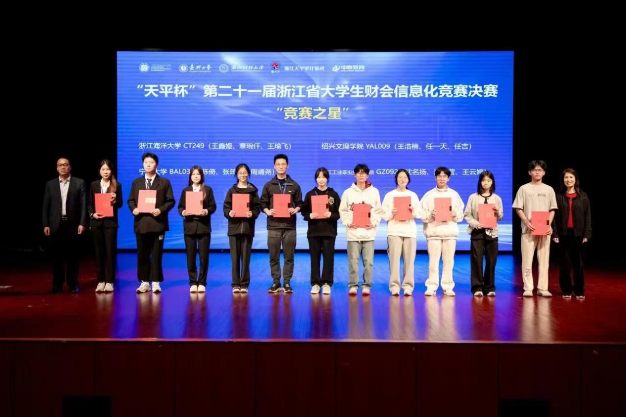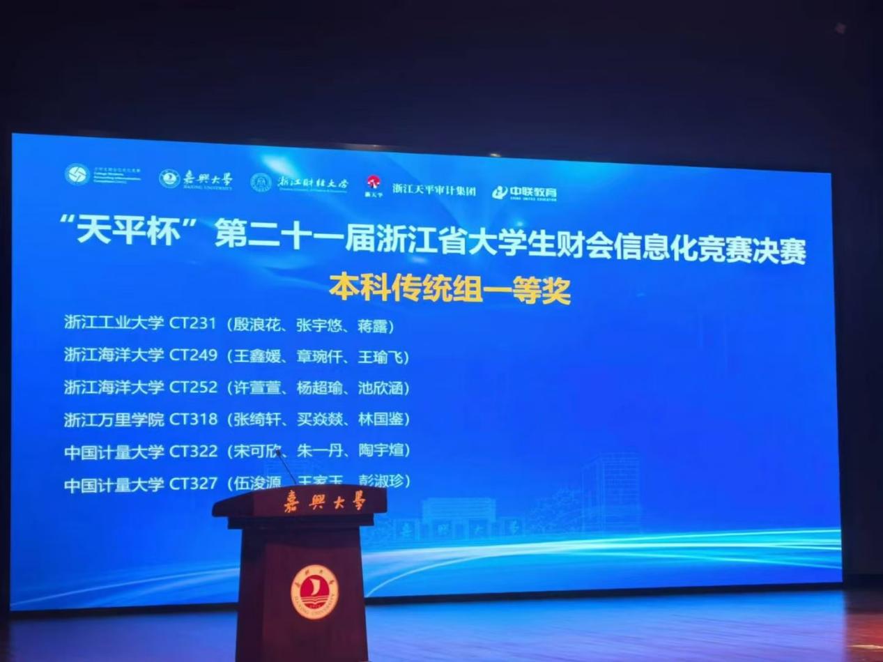 2024年11月9日,由浙江省教育厅、浙江省大学生科技竞赛委员会主办,嘉兴大学、浙江财经大学承办的“天平杯”第二十一届浙江省大学生财会信息化竞赛决赛在嘉兴大学成功举办。best365官方网站登录入口6组参赛队伍在叶海英、赵珍、李征三位教师的指导下全部获奖,在该项竞赛上斩获2项省一等奖、4项省二等奖的优异成绩,并以初赛复赛总分第一的成绩拿到“竞赛之星”荣誉称号,为我校在该项竞赛上取得历史性突破。