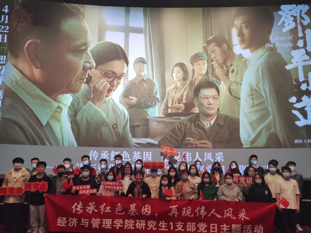 为了进一步巩固拓展党史学习教育成果,弘扬伟大建党精神,激发全体党员的爱国主义情怀,以良好的精神面貌迎接党的二十大胜利召开。2022年4月24日晚,best365官方网站登录入口研究生第一党支部在如心小镇保利国际影城开展“传承红色基因,再现伟人风采”主题党日活动,观看了红色电影《邓小平小道》,追忆伟人足迹,赓续红色基因,凝聚奋进力量。
