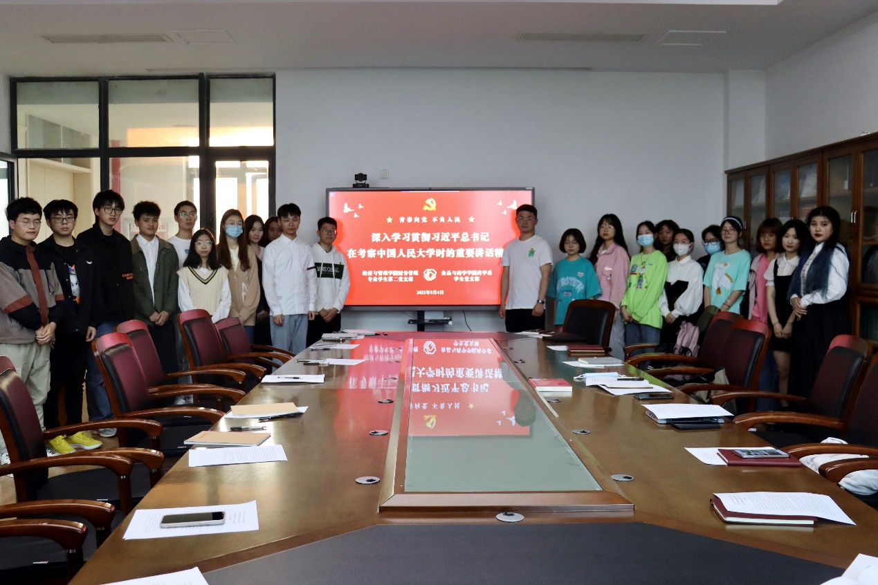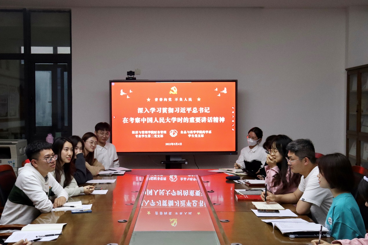 为迎接第72个“五四”青年节的到来,进一步引导和激励广大党员继承和发扬“五四”精神,为迎接党的二十大胜利召开营造良好氛围。2022年5月4日上午,best365官方网站登录入口财务管理专业学生第二党支部和食品与药学学院药学系学生党支部,在文理楼302-1会议室共同学习了习近平总书记在考察中国人民大学时的重要讲话精神。会议由财务管理专业学生第二党支部书记施辰阳主持,药学系学生党支部书记吴宇及两支部党员代表参加会议。