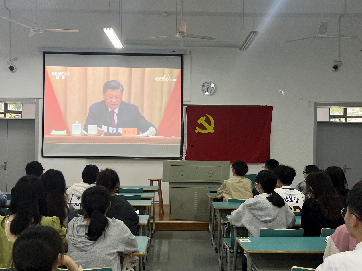 会议伊始,党支部认真落实“第一议题”学习制度,全体师生党员共同观看了习近平总书记在庆祝中国共产主义青年团成立100周年大会上的重要讲话视频。随后,施辰阳老师带领大家总结梳理了十九大以来习近平总书记关于青年工作的重要论述,用“学习、价值观、创新、担当、奋斗”五个关键词深入解读了习近平总书记的“青年观”。施老师强调大学四年是青年磨砺剑锋的关键阶段,广大青年应当坚定理想信念,磨练硬本事,坚定不移跟党走,用青春的智慧和汗水打拼出一个更加美好的中国。