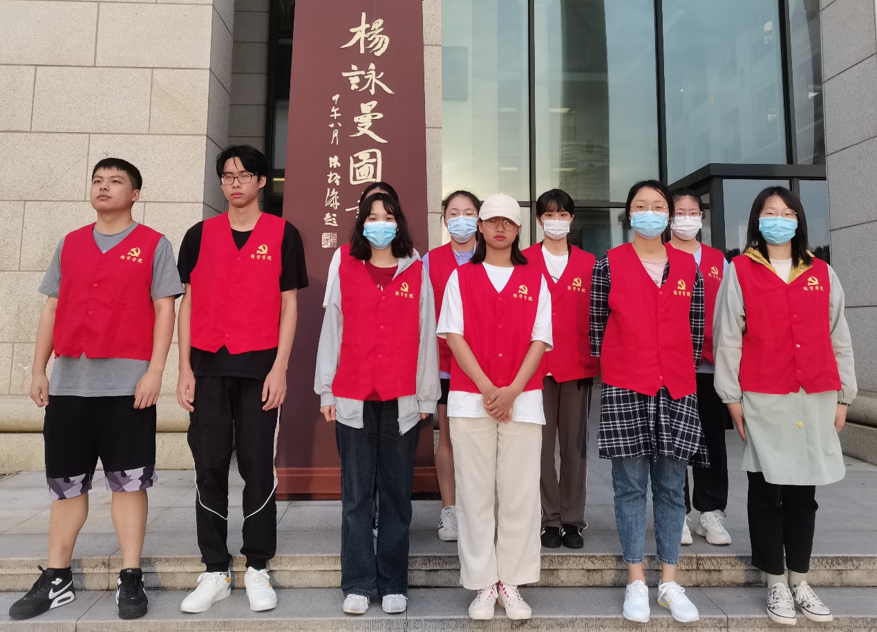 下午5点50分,志愿者们在图书馆门口集合完毕(活动报名11人,实到11人),穿上党员志愿者服,准备进行活动。晚上6点整,志愿活动正式开始。