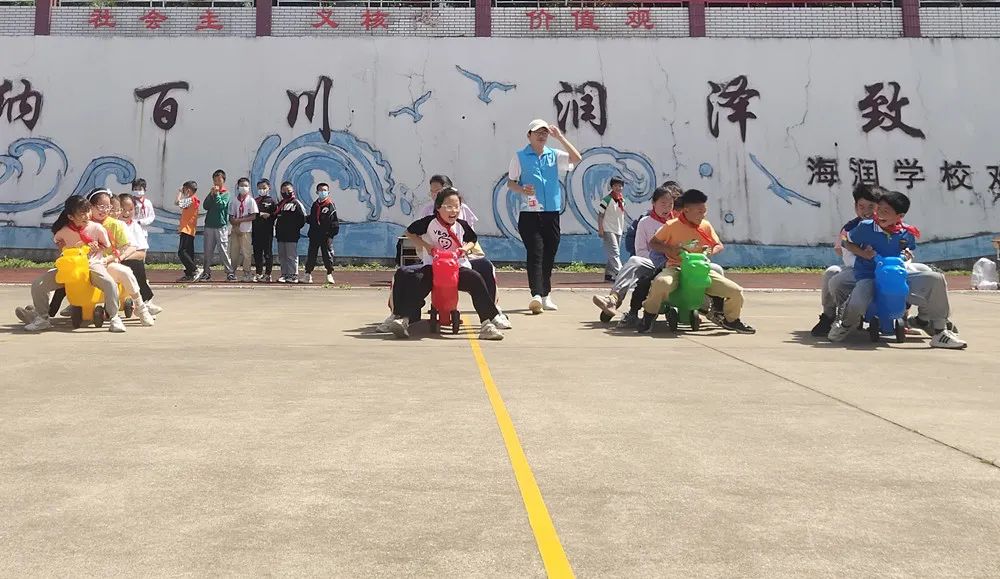 5月25日下午,定海海润学校的操场上,传来了少先队员们的阵阵欢笑声。舟山市青少年活动中心“情暖童心 喜迎亚运”第199期流动少年宫在操场上如火如荼的进行着。